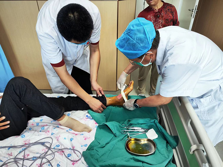 8月28日,《中國燒傷創(chuàng)瘍雜志》常務編委、燒傷創(chuàng)瘍再生醫(yī)療技術臨床專家趙瑞慶,在該醫(yī)院會診了9例慢瘡患者(糖足潰瘍2例,壓瘡4例,會陰部深筋膜感染1例,臀部深筋膜感染1例,下肢外固定皮膚感染1例),并針對每例患者制定出個性化的治療方法,受到當?shù)蒯t(yī)務人員及家屬的熱情稱贊。