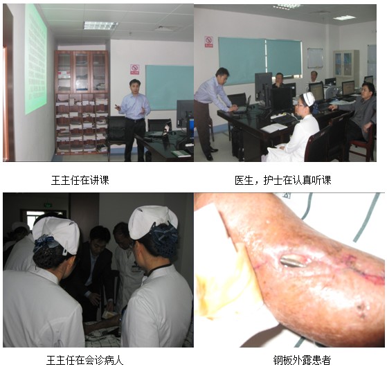 會(huì)后,陳主任邀請(qǐng)王主任會(huì)診了一位骨折鋼板外露的糖尿病患者,并與該科室全體專家、醫(yī)生和護(hù)士長(zhǎng)等醫(yī)護(hù)人員做了進(jìn)一步的技術(shù)實(shí)施的交流與溝通。
