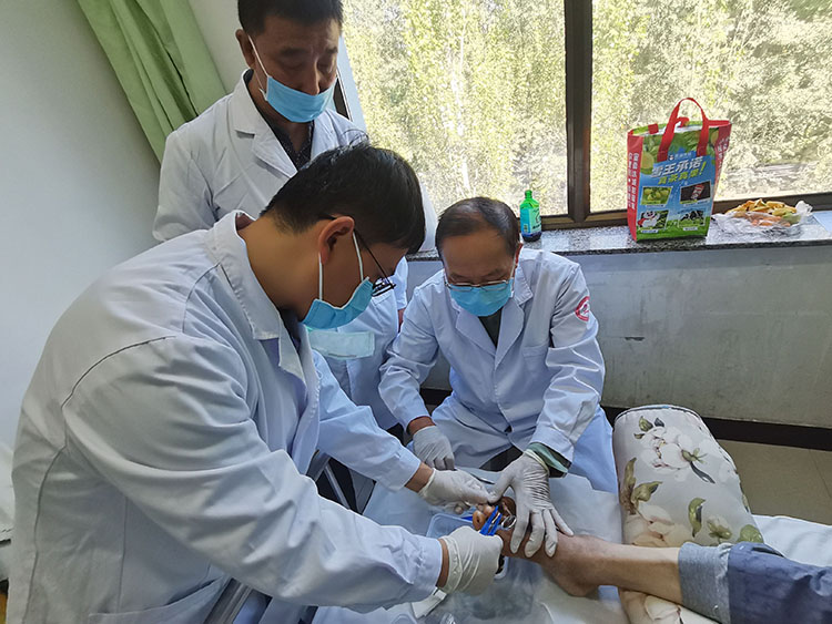 2025年9月25日,《中國(guó)燒傷創(chuàng)瘍雜志》常務(wù)編委、燒傷創(chuàng)瘍?cè)偕t(yī)療技術(shù)臨床專(zhuān)家趙瑞慶在朔州市大醫(yī)院會(huì)診了四例慢性創(chuàng)面患者。其中1例4級(jí)糖足,其余3例冠脈搭橋術(shù)后下肢取血管處感染,足部外傷感染等均為VSD治療患者,討論環(huán)節(jié)趙教授強(qiáng)調(diào)了糖足規(guī)范,程序操作的要求以及簡(jiǎn)易負(fù)壓方法壓力管理的重要性。